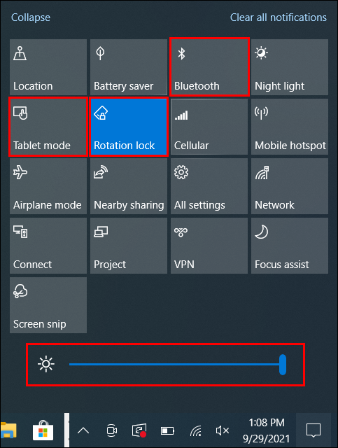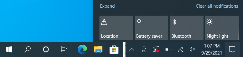 - If there are only four tiles visible in the action center, tap Expand.